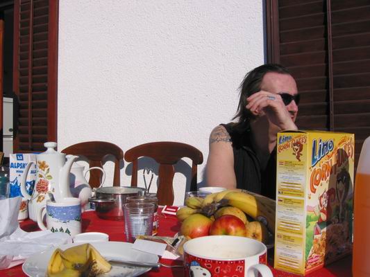Der nächste Tag (2.Februar) begann sehr spät, aber sonnig, so daß wir gleich auf der Terasse spätstücken konnten – und das im Februar! 🙂
