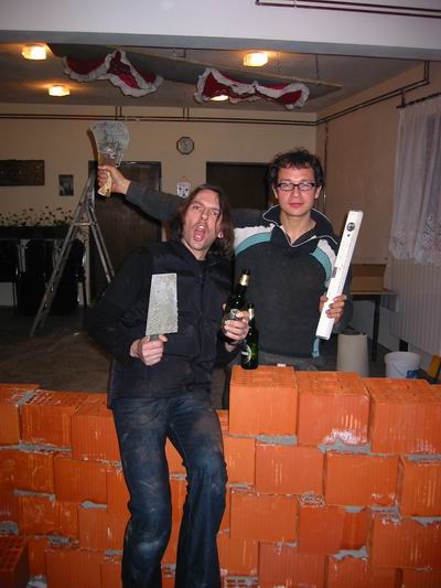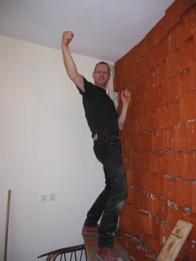 Unser Star-Produzent Christoph stellte beim besichtigen der Räumlichkeiten fest, dass ihm zur akustischen Glückseeligkeit eine Mauer im Aufnahmeraum fehlte (und ein Loch in der Decke!). Als wir dies dem Vermieter unterbreiteten, war sein Kommentar zu unserem Erstaunen: „Nema problema“, was uns gleich zum kroatischen OBI eilen ließ, um Steine und Baumaterialien zu besorgen.
