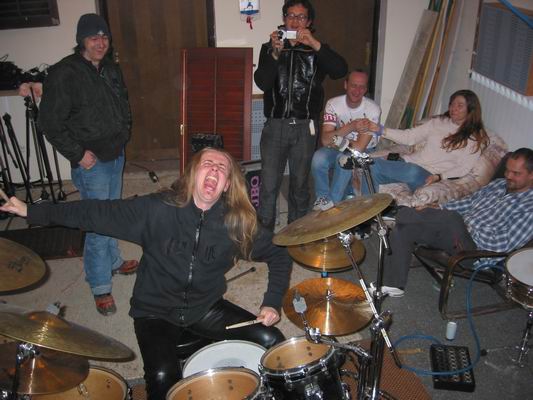Als alles fertig war, machten wir eine lustige Party, bei der jeder mal auf dem Schlagzeug rumhauen durfte – so ein Spaß! (Wolfram war grad aufm Klo)